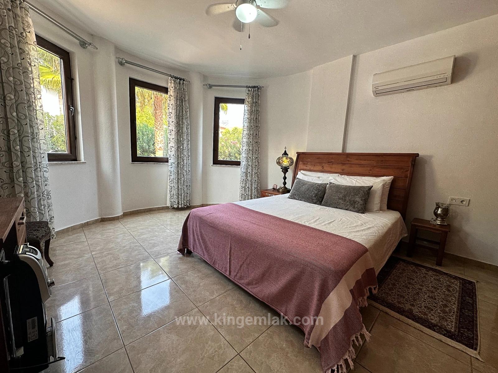Versteckt im Herzen des angesehenen Viertels Maraş in Dalyan liegt eine Villa, die eher einem Traum als der Realität entsprungen zu sein scheint – ein Wohnraum, in dem architektonische Eleganz und natürliche Schönheit in perfekter Harmonie verschmelzen. Diese atemberaubende Residenz ist mehr als nur ein Haus; Ein Refugium für all jene, die jeden Augenblick des Lebens mit Eleganz genießen möchten. Schon beim Betreten der Villa erscheint sie wie eine Welt für sich. Der von hohen Mauern umgebene Garten erhebt sich wie ein schützender Kokon und birgt ein Paradies voller farbenprächtiger Blumen, sorgfältig geschnittener Sträucher und Bäume voller reifer Früchte. Neu angelegte Natursteinwege schlängeln sich durch duftende Blumenbeete und führen zum Herzen der Villa: einem prächtigen, beheizten Salzwasserpool mit Whirlpool. Schwimmen wird hier zur Kunstform – ein sanft plätschernder Wasserfall erfüllt die Luft mit dem beruhigenden Rauschen des Wassers, während ein flacher Liegebereich zum Abkühlen und Entspannen einlädt, halb im goldenen Sonnenschein.