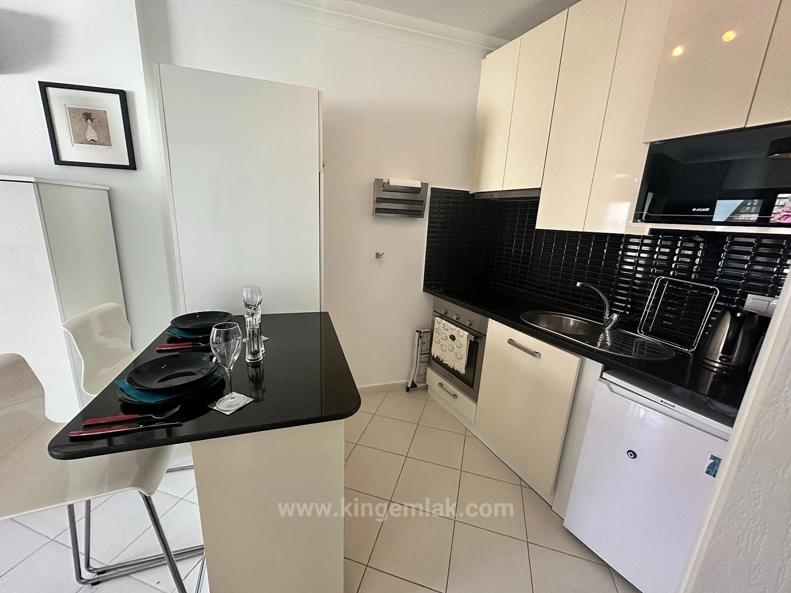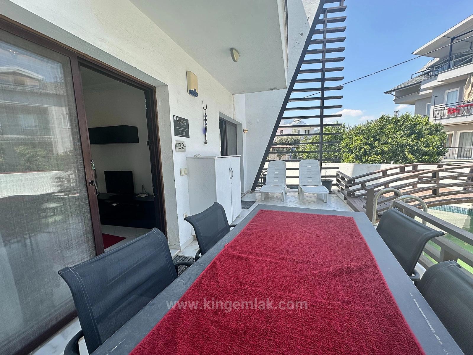 Расположенная в эксклюзивном и престижном комплексе всего из 10 апартаментов, эта выдающаяся недвижимость доступна по эстетичному деревянному мосту, и вы попадаете внутрь через собственный отдельный вход. Бассейн, являющийся центральным элементом комплекса, выделяется своими элегантными зонами отдыха в форме лилий, а просторная общая терраса для принятия солнечных ванн вокруг него предлагает приятные моменты в течение всего дня. Просторная и приватная терраса апартаментов выходит прямо к бассейну, создавая уникальное жилое пространство, где вы можете выпить утренний кофе в тишине воды или насладиться коктейлем на фоне заката вечером. При входе в квартиру сразу ощущается простор и современная элегантность. Большая спальня с двуспальной кроватью, залитая естественным светом, предлагает комфорт и роскошь благодаря встроенным шкафам и прямому выходу на террасу и к бассейну. Стильная ванная комната с душем, выполненная в современном стиле, отделана высококачественными материалами. Открытая планировка гостиной и кухни сочетает в себе эстетику и функциональность, а полностью оборудованная современная кухня создает идеальную обстановку для приятных трапез и встреч. Эта эксклюзивная квартира, предлагаемая к продаже полностью меблированной, готова к немедленному заселению без каких-либо дополнительных затрат. Если вы хотите незабываемый дом для отдыха или эксклюзивное жилое пространство в самом сердце Дальяна, где вы сможете наслаждаться жизнью круглый год, эта недвижимость представляет собой редкую возможность благодаря своему местоположению и качеству жизни, которое она предлагает.