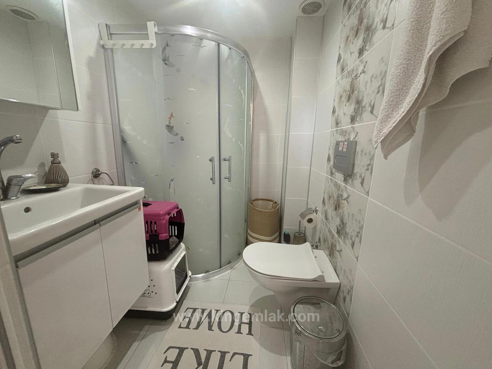 Çift kişilik yatak odası oldukça geniştir ve boydan boya yerleştirilmiş gömme dolapları sayesinde bol miktarda depolama alanı sunar. Hem düzenli hem de konforlu bir atmosfer sağlayan bu oda, dinlenmek ve yenilenmek için ideal bir ortamdır. Banyo ise parlak beyaz tonlarda yenilenmiş olup, temiz, ferah ve modern bir his uyandırır.