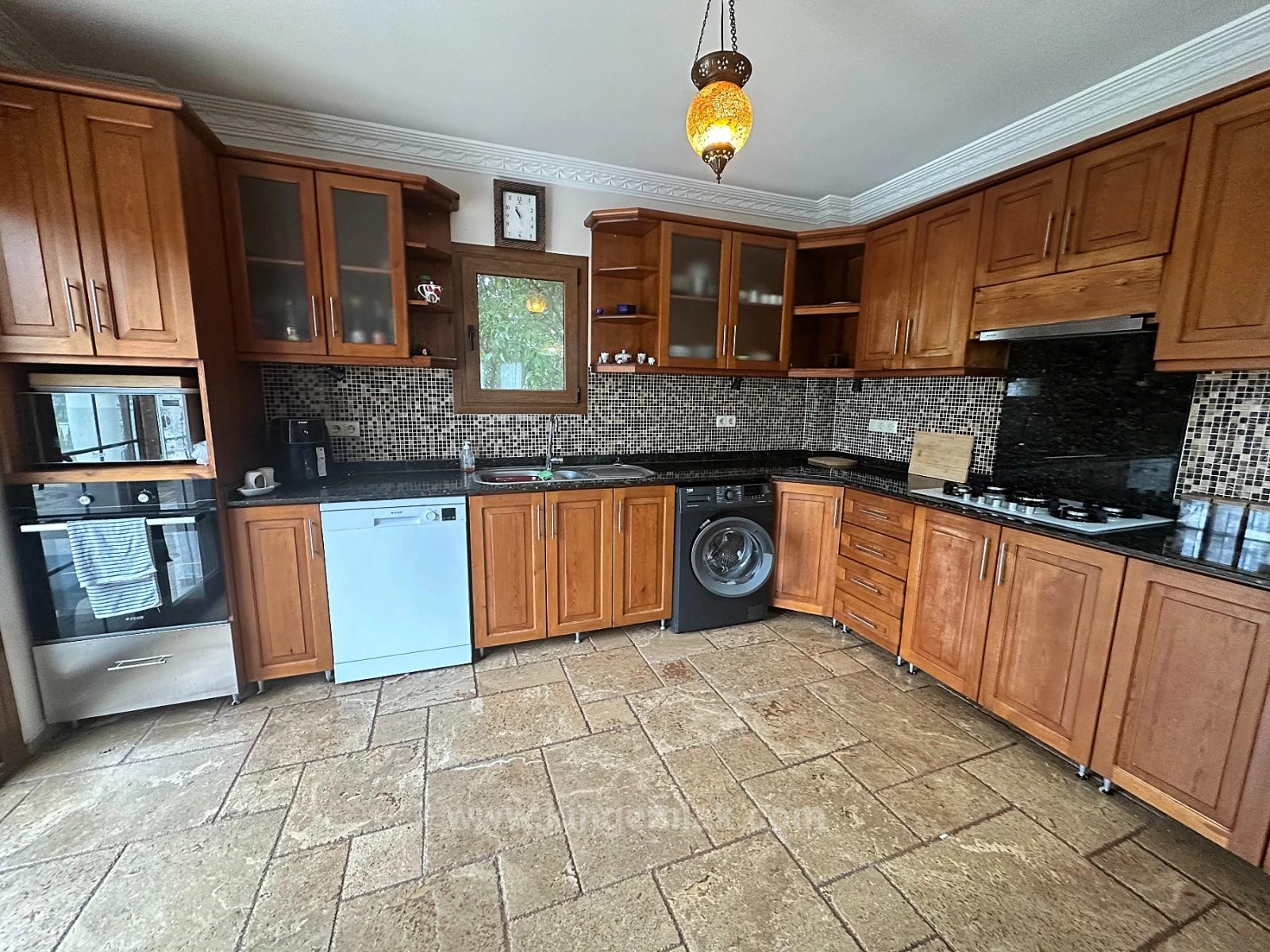 İçeri adım attığınızda ev sıcaklığı ve kalite hissi hemen kendini gösterir. Parlak siyah granit tezgâhlar ve kullanışlı kahvaltı barı ile tamamlanan geniş masif ahşap mutfak, evin kalbini oluşturur — hem estetik hem işlevsel. Zemin kat, birbirini tamamlayan iki ayrı yaşam alanına ayrılmıştır: karakterli açık şömineye sahip samimi bir kış oturma alanı ve ferah, esintiyi yakalayan aydınlık bir yaz salonu. Bu katta ayrıca şık bir misafir banyosu, bol depolama alanı ve merdiven kullanmak istemeyenler için ideal zarif bir çift kişilik yatak odası yer alır.