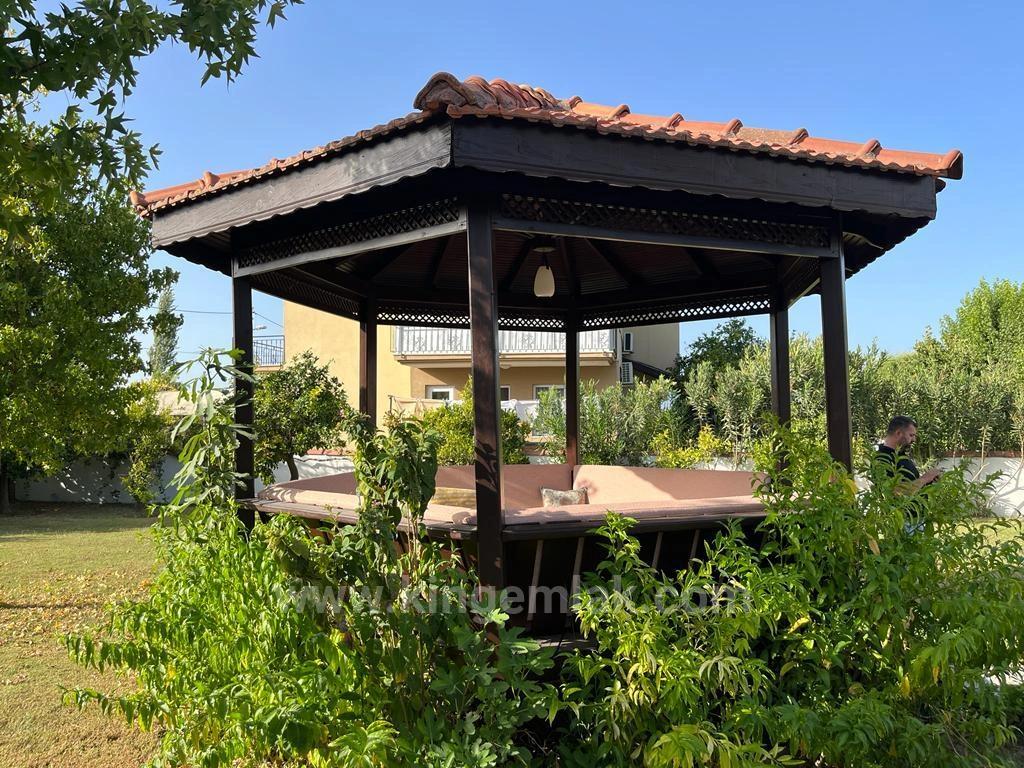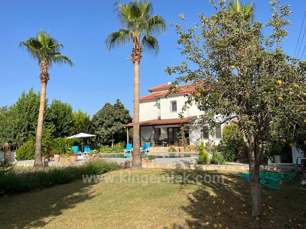 Limon bahçeleri, açık araziler ve dağ manzaralarıyla çevrili olan villanın bahçesi, tek tapu altında birleştirilmiş iki parselden oluşmaktadır. Yemyeşil ve bakımlı bahçede meyve ağaçları, çim alanlar, sebze bahçesi ve altı kişilik geleneksel bir köşk bulunmaktadır. Açık havada keyifli vakit geçirmek için ideal bir ortam sunar.