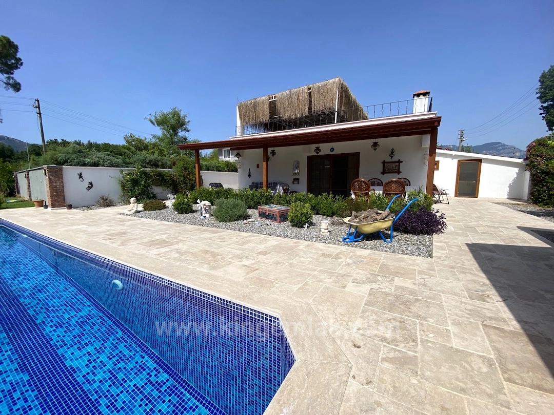 Ana villanın bahçesi içerisinde yer alan, satışa dâhil ikinci yapı ise geleneksel Türk mimarisini yansıtan müstakil bir bungalovdur. Bu ikinci ev; her biri ebeveyn banyolu iki geniş çift kişilik yatak odası, ferah bir açık plan salon-mutfak-yemek alanı, ayrı bir çamaşır/yardımcı oda, geniş bir veranda ve çatı terası ile tamamlanmaktadır. Kendi bahçesi ve bağımsız girişi bulunan bu yapı; misafir evi, ek yaşam alanı ya da başlı başına ayrı bir kiralama mülkü olarak mükemmel bir esneklik sunar.